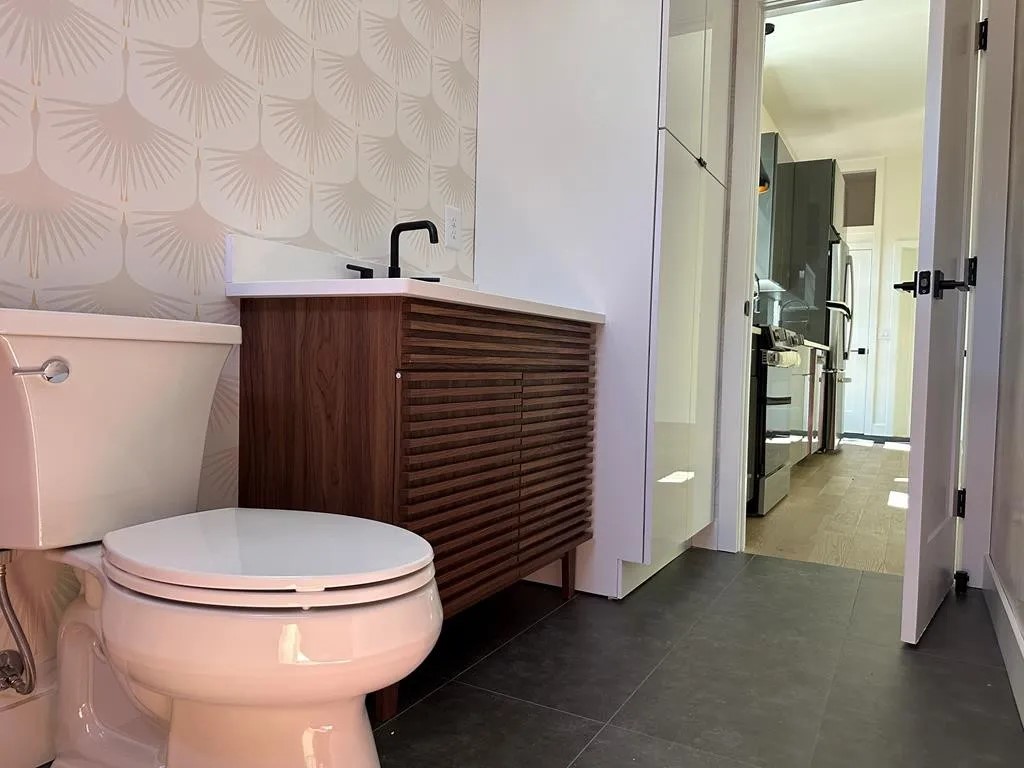 So these two, sharing the lot, provide for a total of 3 bedrooms & 2 baths between the two structures with an enclosed garage under the Woodstar.  Once these are installed on their permanent foundations these two modular homes will provide a very unique tiny home solution. One to live in and one to rent? Complete with decks, stairs and a full length garage under the Woodstar. These two homes bring high quality style with a unique modern solution.